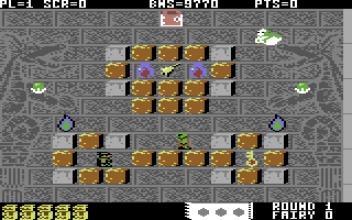 The game’s backgrounds range from dimly lit dungeons to ornate palace interiors, providing a charming sense of progression through Solomon’s ancient domain. Subtle background details—like flickering torches or distant columns—give each stage a unique atmosphere without distracting from the core gameplay. Occasional color palette swaps keep the experience fresh as you tackle new worlds.