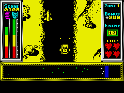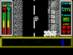 Stainless Steel delivers a high-octane, vertically scrolling shooter experience that blends on-foot combat with vehicular mayhem. You start each level on foot as Ricky Steel, navigating a gauntlet of helicopters, enemy walkers, and flying drones. The moment you reach your Class A101 armoured Nightwind car, the action shifts seamlessly into a Spy Hunter–style road chase, demanding split-second reactions and precise steering.