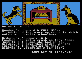 The Growing Pains of Adrian Mole takes the tried-and-true Level 9 adventure engine and refines it into a streamlined, choice-driven experience. Rather than typing commands, you’re presented with three distinct options at each juncture, allowing you to guide Adrian through the ups and downs of teenage life with ease. This pick-and-click style of play eliminates frustrating guesswork while preserving the puzzle-solving spirit that fans of classic text adventures will appreciate.