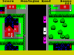 Complementing the core bin-collecting mechanic are a variety of environmental hazards designed to throw off your timing. Step on the lawn and your bonus meter drains faster, forcing careful footwork. Maniacal cars, overzealous cyclists, and territorial dogs patrol the street, each capable of slowing you down or ending your run. A direct collision with a car leads to instant failure, making split-second decisions and quick reflexes essential.