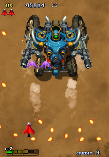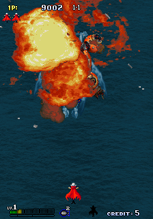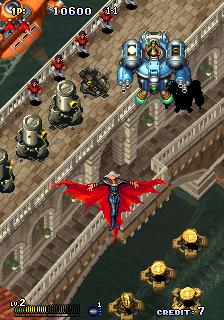 Enemies and bosses stand out with bold color palettes and inventive design. Sea serpents, cannon‐toting galleons, and clockwork monstrosities all burst onto the screen in high resolution, showcasing Cave’s skill at crafting imaginative foes. The Dreamcast hardware ensures smooth scrolling and consistent frame rates, even when the screen is absolutely plastered with bullets and explosions.