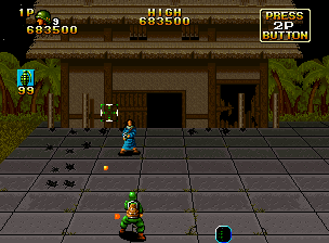 NAM-1975 drops players straight into the heart of the Vietnam conflict with a classic run-and-gun experience. You and an optional second player navigate open battlefields, riverbanks, jungles, and enemy encampments, all while guarding your on-screen cursor as the barrel of a mounted machine gun. The responsive controls let you move independently of your aim, providing that satisfying feeling of mowing down foes across multiple planes of depth.