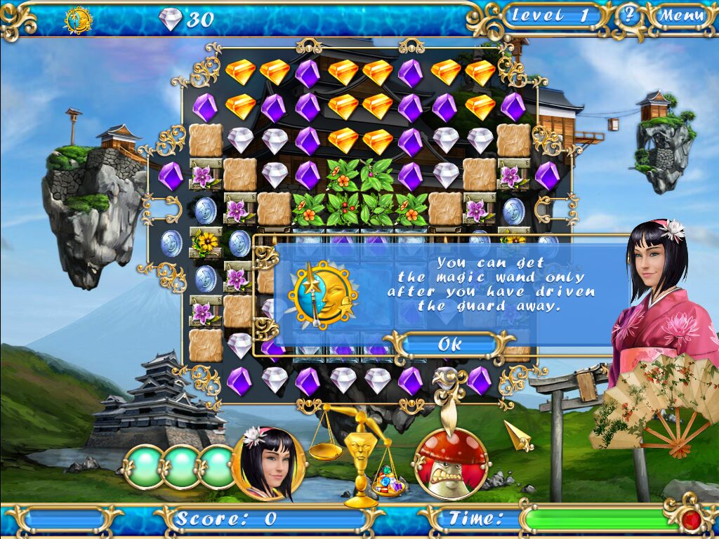 The animations are smooth and satisfying: clusters explode into sparkling particles, and power-ups trigger playful effects like swirling leaves or blossoming petals. Mini-game scenes are richly detailed, with hidden-object stages featuring hand-drawn items that blend seamlessly with the environment. Shadow-matching puzzles use crisp silhouettes that contrast cleanly with the background, ensuring you’re not squinting or second-guessing what belongs where.