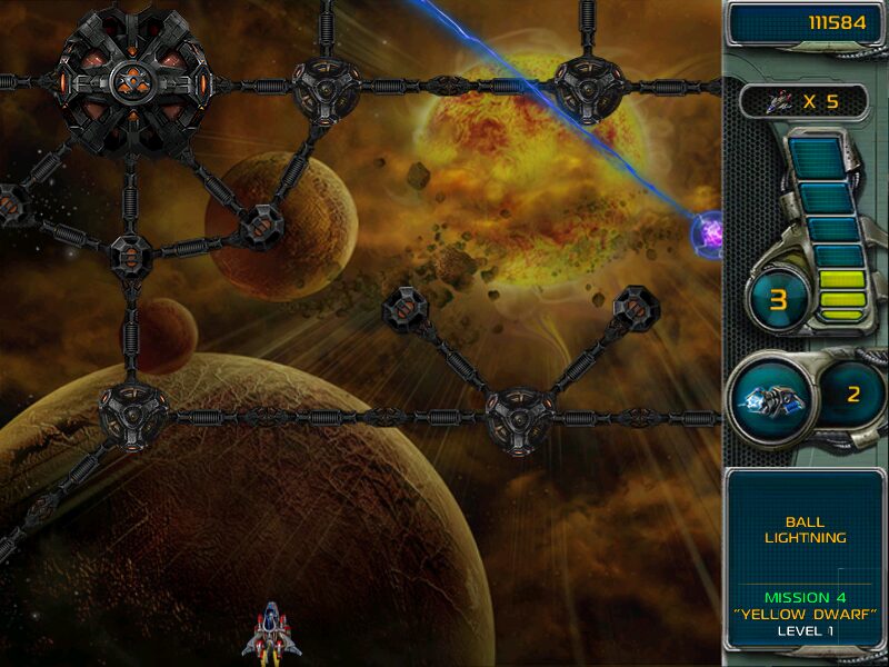 Your arsenal evolves as you progress, with pickups dropped by defeated enemies offering everything from mines that create defensive buffers to chain lightning weapons that leap between targets. Explosive “sticky” mines latch onto enemies before going off, making for satisfying chain reactions when enemy clusters are nearby. These special weapons complement your basic laser and missile loadouts, ensuring each level feels fresh and dynamic.