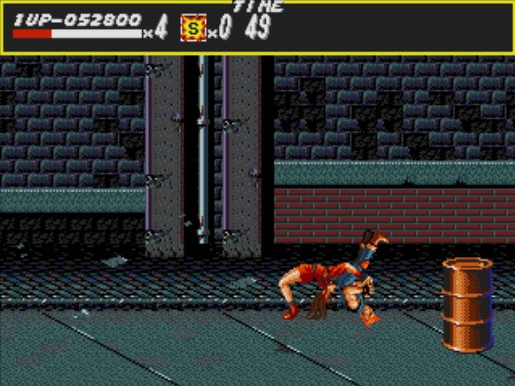 The level design itself is a classic side‐scrolling affair, where you move from left to right (with a couple of clever exceptions) while cleaning the streets of goons. Enemies appear in waves, each with their own attack patterns, pushing you to time your punches, kicks, and grapples with precision. The occasional “death drop” sections and elevator stages break up the monotony, forcing you to juggle spatial awareness with offense. Scattered weapons—knives, pipes, and even fried turkeys—add an extra layer of tactical choice to each skirmish.
