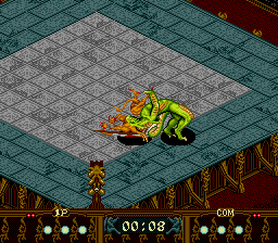 Close-quarters engagements open up rush attacks by tapping the A or C button rapidly. This simple input can morph into dramatic throws or choking grabs, rewarding button mashing with satisfying cinematic flair. Since there’s no traditional health bar, you must track your opponent’s condition via three bottom-screen icons. Each time a beast is knocked down long enough, one icon turns red; once all three icons are red, you lose the bout. This system keeps tension high throughout every exchange.