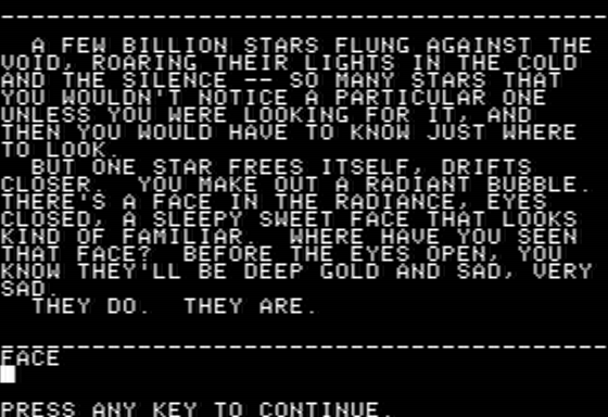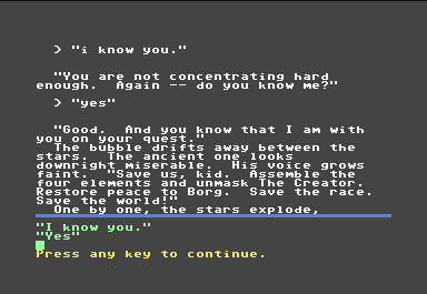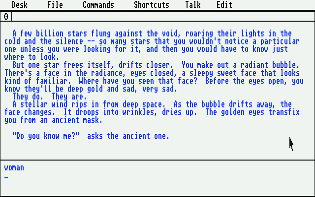 The minimal graphical interface is clean and functional. Your command line sits at the bottom, while the main text window displays narrative and dialogue in distinct typefaces. Important keywords and character names are often highlighted, making it easy to track objectives and recall clues.