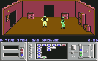 Infiltrator II delivers a compelling blend of stealth action and aerial combat, splitting the player’s time between sneaking through enemy compounds on foot and piloting an advanced attack helicopter. On the ground, you guide Jimbo McGibbets as he slips into enemy huts, silently navigates perimeter patrols, and retrieves vital weapons and intelligence. The inclusion of gas grenades adds a tactical layer, allowing you to incapacitate guards long enough to scour rooms for documents, codes, and hardware upgrades.