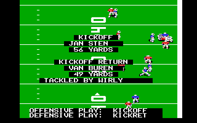 Considering its late-1980s pedigree, John Madden Football delivers surprisingly readable visuals that prioritize clarity over flashy effects. Players appear as small, color-coded sprites, yet each roster is distinct enough to track individual positions even amid the chaos of a broken play. The top-down, sideline view grants a commanding perspective of the entire field, allowing swift adjustments to routes and defensive assignments.