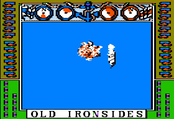 Although Old Ironsides is rooted in retro design, its clean visuals effectively convey the heft and movement of 19th-century sailing ships. The two-dimensional sprites of each vessel are crisp, with distinct masts and hull outlines that make it easy to discern orientation and damage status at a glance. The single-screen layout keeps the action tightly focused, with no distractions from off-screen elements.
