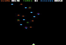 Animations are simple but effective: alien sprites shift frames as they march in formation, your tank’s missiles streak upward with a brief flicker, and every explosion yields a burst of flashing pixels. There’s no parallax scrolling or 3D trickery here, but the modest visual flourishes—screen shakes, flickering thrusters on the tank—add weight to every shot and hit.