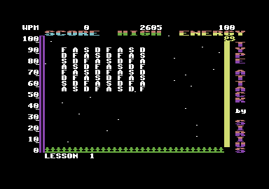 Type Attack reinvents the classic Space Invaders formula by replacing alien ships with descending letters. As characters slowly drift toward the bottom of the screen, you must type the exact letters in the correct order to obliterate them before they breach your defenses. Only the letter at the bottom of any given column is a valid target, so finger speed, accuracy, and split-second decision-making are crucial. Make a mistake by hitting the wrong key and you’ll see your energy reserves drain, upping the tension with every missed keystroke.
