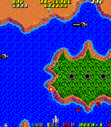 Visually, Argus embraces the colorful, sprite-based style of late-’80s arcade shooters. Enemy designs range from sleek fighters to cumbersome ground turrets, each drawn with sufficient clarity to telegraph their attack patterns. While the backgrounds are relatively simple, they serve their purpose by highlighting the foreground action and keeping the player’s focus on incoming threats.