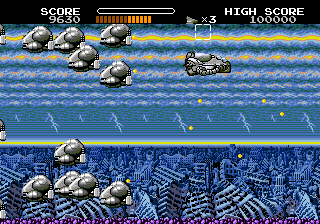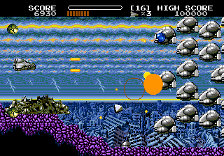 The bio-ship Gomorrah itself is a visual centerpiece. As you collect life-up power-ups, you can watch it swell in size and armament, giving immediate feedback on your progression. Despite the increased bulk, the game maintains clarity in crowded skirmishes. Overall, the graphics strike an excellent balance between arcade nostalgia and polished modern presentation.
