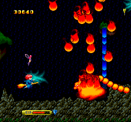 Visually, Fantastic Night Dreams: Cotton is a charming showcase of vibrant 16-bit style art. Each level is colored to evoke a different fantasy realm—haunted forests bathed in moonlight, candy-coated castles dripping with frosting, and cavernous lairs filled with glowing gems. The backgrounds scroll smoothly and feature subtle parallax layers that give depth to the otherwise flat plane.