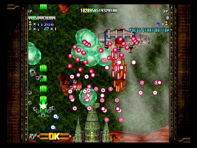 The Reflect Force is the game’s standout innovation: activating it creates a temporary shield that absorbs incoming bullets and converts them into powerful counterattacks. Timing your Reflect Force to intercept volleys of enemy fire not only keeps you alive but also racks up bonus damage, encouraging a risk‐versus‐reward playstyle. Bombs, meanwhile, clear the screen of weaker foes and bullets, granting precious breathing room during overwhelming boss phases.