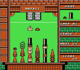The NES version spices things up further with an aid system featuring puzzle legends Alexey Pajitnov and Vladimir Pokhilko. By completing five full sets of hats linked to each avatar, you earn special abilities like column‐switching (Vladimir) or bottom‐row removal (Alexey). You can store multiple aids until you’re ready to deploy them, or even sell them off for extra cash at level’s end. That layer of strategic resource management elevates the puzzle formula beyond mere reflex play.