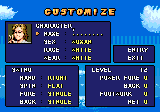 Customization plays a significant role in shaping your on-court strategy. Before hitting the court, you can create your own player by choosing race, sex, and tennis wear color. You also decide whether your character is right- or left-handed, select spin preferences for serves and groundstrokes, and define forehand and backhand styles. Allocating a limited pool of skill points among power forehand, backhand, footwork, and net game adds an RPG-like layer to the experience.