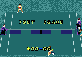 Visually, Jennifer Capriati Tennis strikes a good balance between realism and arcade-style flair. The player sprites are faithfully modeled, with animation frames that capture the fluid motion of swings, serves, and sprints. From the crisp follow-through of a topspin forehand to the quick footwork at the net, each movement feels well-animated.