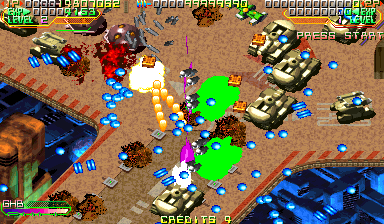 The Dreamcast version preserves the arcade visuals faithfully, with only minor downscaling to accommodate console performance. Texture detail and color saturation remain strong, and the frame rate stays rock-solid even in the most hectic bullet-hell sequences. Animations for the absorption field and counter-attack bursts look especially impressive, giving each encounter a dynamic, kinetic feel.