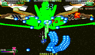 Beyond the bite-and-spit mechanic, Mars Matrix incorporates an experience-cube system that rewards aggressive play. Each destroyed enemy and reflected bullet releases cubes that bolster your ship’s firepower and contribute to a score multiplier. By chaining destruction and absorption, skilled pilots can amass astronomical scores in a single run.