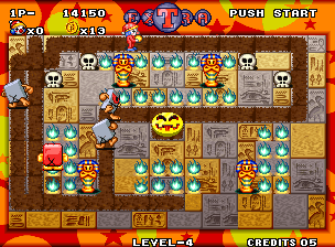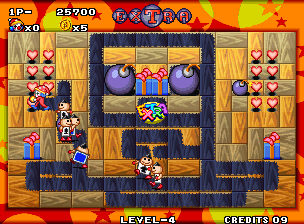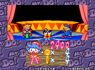 In addition to standard stages, Neo Mr. Do! features bonus levels reached by eliminating all enemies rather than completing the usual collection. These stages shift focus to precision platforming: you carefully drop apples to form a makeshift staircase toward the exit. Successfully navigating these unique puzzles rewards you with substantial points and a refreshing change of pace from the main game loop.