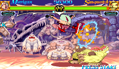The roster of 14 Darkstalkers characters—Victor the Frankenstein’s monster, Demitri the noble vampire, the hulking Sasquatch, the mystical Bishamon, the twin-souled Hsien-Ko, and more—ensures a wildly diverse lineup. Each fighter boasts distinct move sets rooted in their monster lore: Felicia pounces like a feline whirlwind, Rikuo commands tides of water, and Pyron unleashes cosmic flames. This variety encourages experimentation and keeps matches feeling fresh.