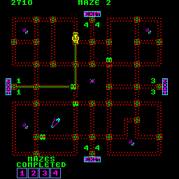 The game structure consists of four distinct mazes per stage, and you can swiftly jump between them using the side, top, and bottom exits. This multi-maze design keeps the action fresh and encourages strategic movement. Do you finish one maze entirely before moving on, or do you dash through multiple areas to avoid pursuing enemies? Each choice impacts your success, making Pepper II a delightful exercise in risk versus reward.
