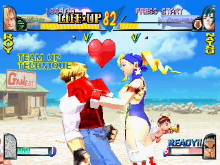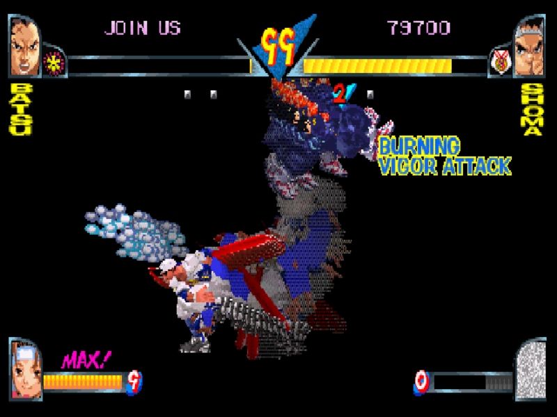 Graphically, Rival Schools captures the energetic, anime-inspired aesthetic that Capcom fans cherish. Character sprites are richly detailed, with vibrant color palettes that distinguish each school’s uniform and personality. From Batsu’s fiery red accents to Kyosuke’s sleek blue ensemble, every fighter pops against the stage backgrounds, ensuring readability even amidst the on-screen chaos of multi-character encounters.