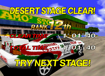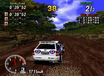 Even without a deep plot, Sega Rally achieves a sense of context through its arcade heritage. The sound of engines revving, the roar of the crowd, and the pit-stop countdown all combine to create an atmosphere that feels like a real rally event. In that respect, the game’s “story” is written by you—one high-speed corner at a time.