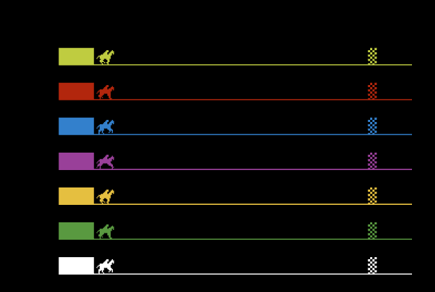 The hurdle animations are crisp, and the jump arcs are rendered smoothly, providing clear visual feedback on whether you’ve set the paddle marker at the correct height. Colors are bright and contrasting, ensuring that both the horses and obstacles are quickly recognizable, even when the pace heats up. The horizontal scrolling is steady, and there’s no flicker or slowdown, even when multiple horses are locked in a tight race.