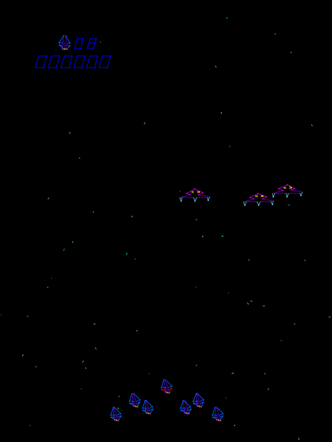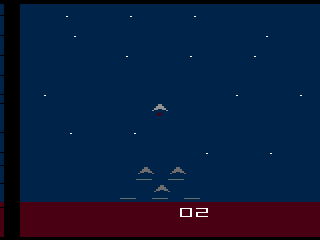 In Tac/Scan, you take command of a five-ship squadron positioned along the bottom of the screen, tasked with annihilating incoming enemy airships before they reach your command base. Each of your ships can be individually destroyed by enemy fire, and losing one not only diminishes your firepower but also shrinks your formation—raising the stakes with every hit you take.