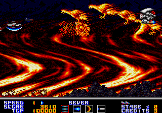 Stage design is mostly carried over from the original Genesis release, offering tight, linear corridors, open-space dogfights, and gravity-defying tunnels. However, levels 4 and 5 stand out with entirely new graphics, layouts, and enemy placements that feel fresh even to veterans. These two stages showcase the developers’ willingness to innovate within a familiar framework, keeping the pacing consistent while surprising you with new challenges.