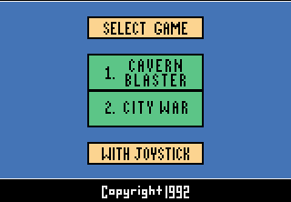 Neither Cavern Blaster nor City War leans heavily on narrative, reflecting the arcade roots of these titles. In Cavern Blaster, you assume the role of an unnamed pilot sent to destroy a complex network of subterranean laser gates that threaten surface colonies. The backstory is relayed via the manual or supplemental material rather than in-game text, leaving most of the immersion to your imagination as you navigate each winding cavern.