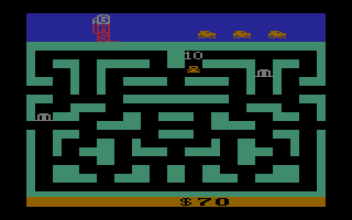 Progression is tied to both your bank haul and your fuel gauge. Robbing a bank replenishes gasoline, encouraging aggressive play, but also triggers the cops. If you manage to keep your fuel up and clear the banks, an exit tunnel appears that whisks you to the next town. Each successive city presents more intricate street layouts and smarter, faster police cars, ensuring the difficulty curve remains steep. The blend of resource management, pursuit evasion, and route memorization creates addictive replay value.