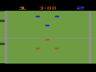 Variety is a core strength here, thanks to 54 distinct game settings. You can toggle between one- and two-player modes, adjust goal size (large, medium, or small), introduce or remove out-of-bounds penalties, and even handicap your own goal width via the difficulty switches. These options keep matches fresh and let players tailor the challenge—whether you’re teaching a newcomer or testing your reflexes against a tough computer opponent, there’s a setting just for you.