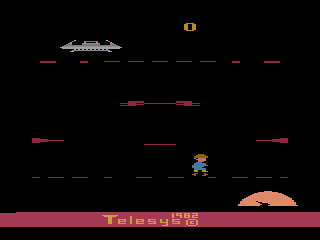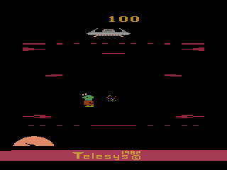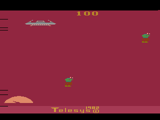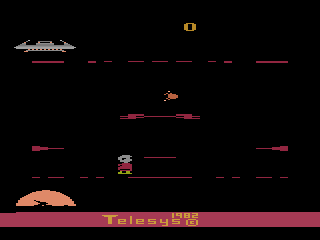 The Rescue phase shifts the tension to precision shooting and timing. As a Cosmic Kid scuttles across the screen in a set zig-zag path, you must fire from the space station to knock creeping aliens back to the bottom. Shots that miss or hit the Kid carry dire consequences—a fresh casualty on the planet’s brink and another sliver of orbital decay. The two Creep variants move unpredictably enough to keep you on your toes, yet follow patterns you can learn and exploit over time.