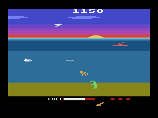 Scoring in Crash Dive hinges on aggressive yet strategic play. You accumulate points by destroying aerial foes like planes (300 points) and helicopters (100 points), or aquatic threats such as angler fish (200 points) and sharks (100 points). Birds offer no points but can serve as early warning signals, especially since you’ll hear their flapping before they appear on screen. Valuable treasures like crowns (1,000 points) or the elusive key (5,000 points) lurk deep under minefields, rewarding patient, low-speed ascents with explosive big-ticket gains.