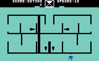 Ghost Manor unfolds across five distinct screens, each offering a unique challenge that keeps the action fresh from start to finish. You begin in the moonlit graveyard, playing a game of tag with a spectral companion—either a rainbow ghost or a dancing skeleton—whose reward is a stash of spears. Firing these projectiles introduces an element of ranged combat that contrasts nicely with the close-quarters tension you’ll feel later inside the manor.