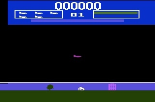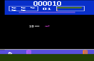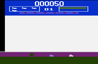 Resource management is central to the gameplay loop. Your ship’s fuel gauge sits prominently on the HUD, forcing you to balance aggressive satellite interceptions with occasional retreats to refuel. Running out of fuel means losing a life, so learning when to press forward and when to back off becomes its own mini-strategy. On top of that, a laser heat indicator sits just below the fuel meter—overheat your weapon with reckless firing, and you’ll experience a frustrating cooldown period that can leave you vulnerable to falling debris.