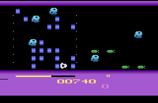 As one of the earliest Atari 2600 homebrew titles, Oystron stands out for its lean yet expressive visuals. The game makes clever use of the 2600’s limited color palette, vividly distinguishing the player’s ship, oysters, pearls, and the boss entity. Each sprite is simple but instantly readable, ensuring you never lose track of crucial objects during hectic moments.