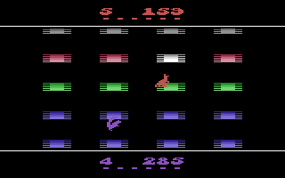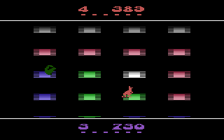 Quick Step delivers a fast-paced, competitive platforming experience where timing and strategy are paramount. Players control either a nimble kangaroo or a swift squirrel, each vying to rack up points by bouncing across an ever-scrolling trampoline field. As grey trampolines descend into view and turn pink, both critters must leap quickly to claim them—pink trampolines net three points, while trampolines of your own color yield six points when they exit the bottom of the screen.