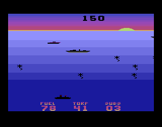 Resource management sits at the heart of Seawolf’s gameplay loop. With only fifty torpedoes and ninety-nine units of fuel, every shot must count—and every missed shot is a wasted opportunity. Mines drift ominously in the water column, ready to gobble up your precious ammunition without awarding any points. At the same time, white-hulled ships introduce a unique risk: if your torpedo rebounds off them, you lose not just the weapon but also precious fuel.