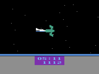 Shuttle Orbiter also offers four difficulty settings, selectable by moving the joystick up or down at launch. Starting at Game 0—with no debris field—players can steadily build their skills before facing the chaos of space junk in higher modes. Without a traditional score system, the game instead measures success by how swiftly and safely you can deliver all ten components to the incomplete station. This focus on time and survival delivers a pure, minimalist arcade experience that rewards mastery of its core systems.