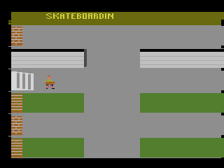 Getting on your board is simple yet satisfying: move left or right, then press Fire while you’re in motion. Once you’re rolling, the directional input steers you, Fire executes a jump, and holding Fire lets you land in a crouched stance. These basic controls unlock a surprisingly deep skill ceiling as you learn to combine steering, aerial tricks, and crouch landings to maintain speed and avoid crashes.