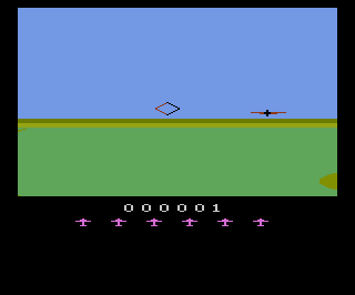 Spitfire Attack puts you in the cockpit of an American fighter pilot tasked with defending the skies from enemy aircraft and ground installations. The core loop is straightforward: push left or right to bank your Spitfire, push up to descend and down to climb (a retro inversion that takes a moment to master), then press the fire button to unleash your machine guns. This simplicity creates an immediate arcade-style thrill, where split-second maneuvers can mean the difference between a perfect strafing run and a fiery crash.