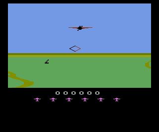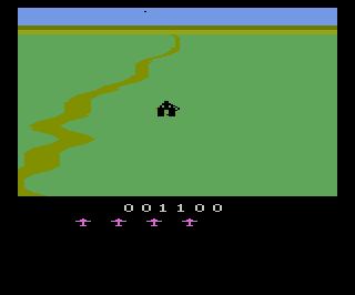 Mission objectives vary between aerial dogfights, bombing runs on enemy ammo dumps (those little black houses), and disabling sundial-shaped anti-aircraft guns. Each target has its own hitbox quirks, so you quickly learn to lead shots, adjust altitude, and time your passes to avoid flak bursts. The low-altitude warning system keeps you on your toes; ignore it for too long and you’ll kamikaze into the ground, adding an extra layer of risk versus reward.
