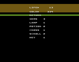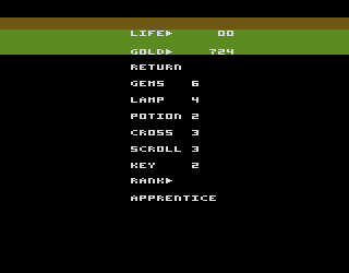 Resource management adds a deeper layer of strategy. You’ll need to gather keys for locked doors, collect nine gems to trade for vital supplies, and decide when to use limited‐stock items like lamps, scrolls, and rings. Lamps light up the entire maze—an invaluable asset on darker levels—while scrolls reveal the positions of the wizard and his bat, allowing for preemptive escapes. Timing your use of the cross, which pushes enemies away, or saving gold for bribing monsters in the final dungeon, can mean the difference between a narrow escape and a crushing defeat.