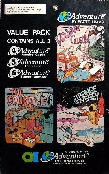 Adventure Value Pack #2 brings back the charm of early text adventures with a hearty compilation of three Scott Adams classics. Each title—Voodoo Castle, The Count, and Strange Odyssey—retains the core parser-based mechanics that defined the genre. Players type simple two-word commands to explore rooms, pick up objects, and solve puzzles, creating an old-school experience that still feels engaging today.