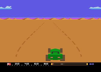 Baja Buggies employs a pseudo-3D perspective that was impressive for its era, giving racers the sense of depth and distance as they charge across the desert. The game uses clever Display List Interrupts (DLIs) to render a multicolor horizon that seamlessly transitions from sun-bleached sky to golden dunes. This technical trickery not only creates a more vibrant backdrop but also enhances the illusion of forward motion as colors shift subtly over the course of each lap.